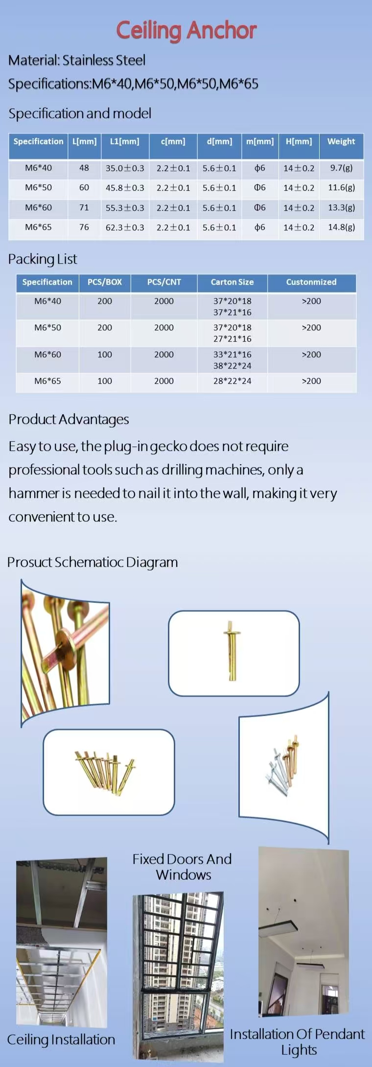 Size: : M6*40/M6*50/M6*60/M6*65
